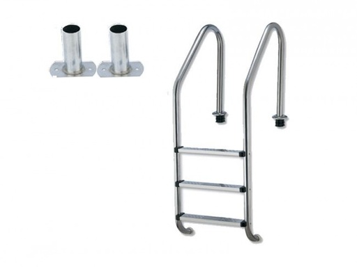 De trap wordt compleet geleverd met alle montage materialen. De bijgeleverde kunststof voeten, welke ingestort dienen te worden, maken deze trap uitermate geschikt voor gebruik in constructieve baden.
